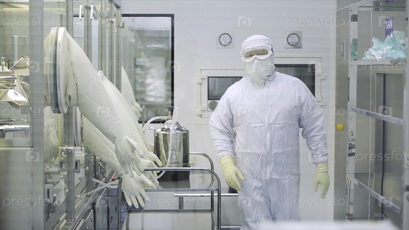 Фармацевтический фабричный работник, управляющий панелью фармацевтической машины