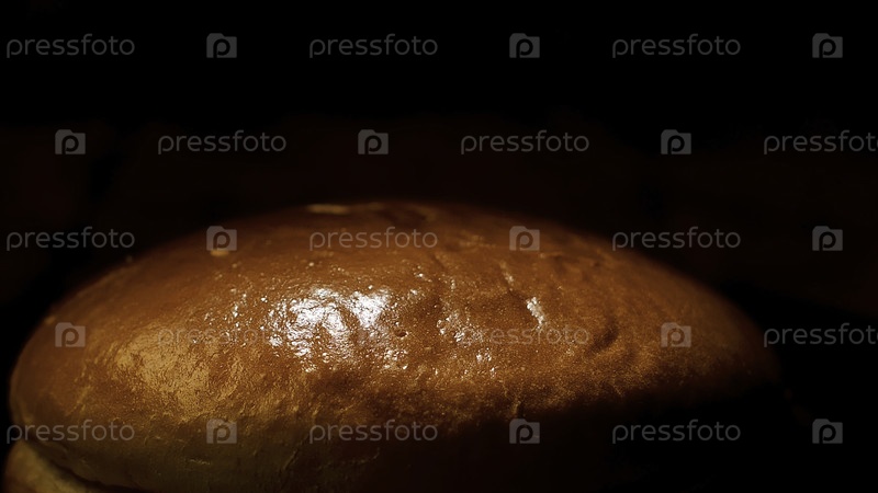 Закрывает свежий вкусный хлеб, подчеркнутый на черном фоне, концепцию кондитерской продукции. резервные кадры. печь для выпеченного хлеба с восхитительной розовой корой