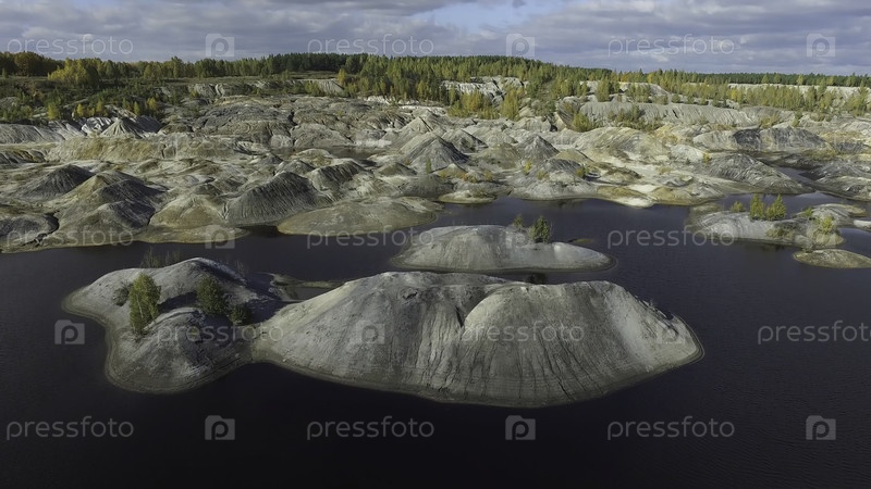 Вид с воздуха на красивый пейзаж с островами, скалами и озером. Кадр. Удивительный природный ландшафт озера с горами и островами. Панорамный вид на реку