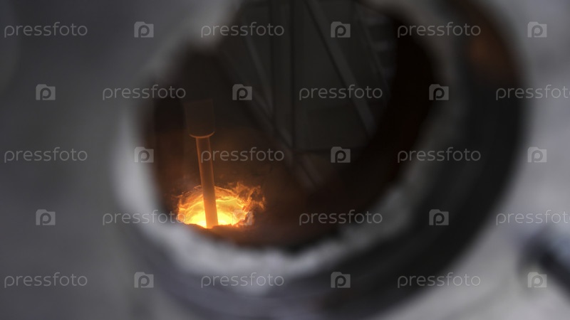 Закрытие небольшого окна внутри металлического барьера для наблюдения за процессом плавления, концепция современных технологий