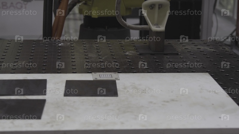 Рука робота работает умно в отделе доставки на заводе.Промышленный робот с CNC-машиной