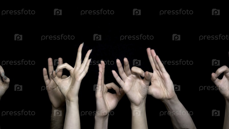 Руки показывают жест хорошо или все хорошо изолированы на черном фоне