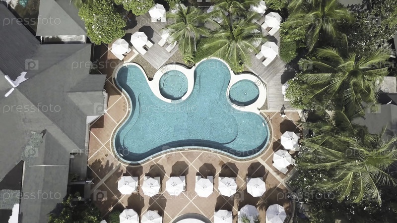 Бассейны в отеле на тропиках днем. видео. симпатичный бассейн в отеле. бассейн роскошного отеля. вид сверху от гостиничного бассейна