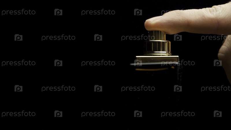 Флакон с парфюмом на черном фоне.Закрой бутылку спрея капли на чёрный фон