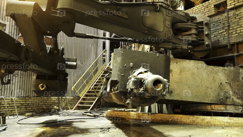 Процесс литья металла с высокой температурой огня на фабрике, концепция тяжелой промышленности. горячий магазин металлооплавильного завода, промышленное оборудование