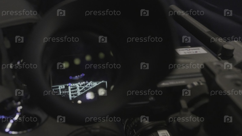 Профессиональная видеокамера Видоискатель. видеокамера. профессиональная видеокамера высокой четкости. детали видеокамеры, съемочная группа, фон за кулисами