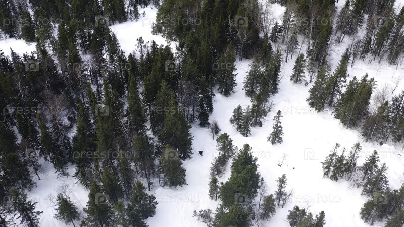 Люди катаются на сноуборде вниз по склону зимнего леса, концепция экстремальных видов спорта