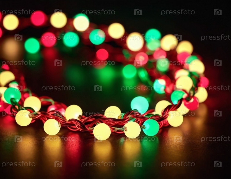Рождественские огни на темной поверхности. Светлая смесь красного, зеленого, желтого и голубого цветов. Светильники выстроены извилистым образом, создавая ощущение движения и капризов. Праздничная и приглашающая атмосфера. Xmas design