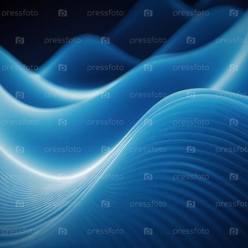 Плавучие 3D-синие волны создают абстрактное представление динамики жидкостей, вызывая спокойствие и глубину в минималистическом дизайне, который улучшает цифровое творчество