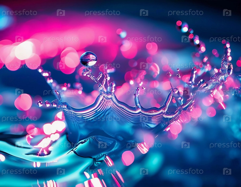 Множество ярких капель вспыхивают в красочный взрыв, создавая потрясающий дисплей ярких оттенков на слегка размытом фоне