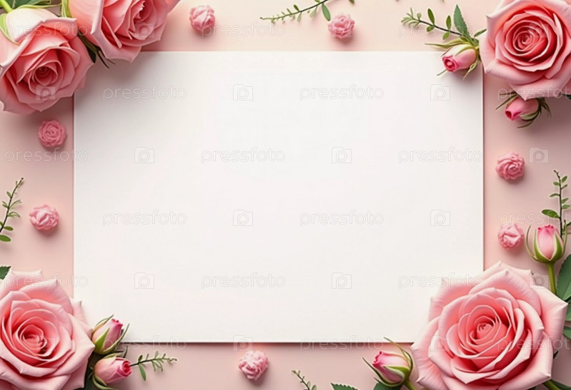 Нежные розовые розы окружают пустое пространство, идеально подходят для написания личных сообщений.Эта красивая цветовая аранжировка добавляет элегантности к любому случаю. День рождения, День матери, день святого Валентина