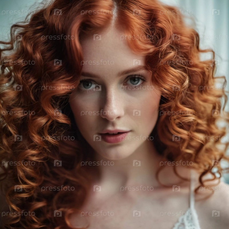 Ярко-красные локоны красиво сияют при естественном свете, раскрывая сложные узоры и здоровый блеск. Близкий снимок захватывает текстуру и глубину каждой морщины. Красивая молодая девушка. Генерация ИИ