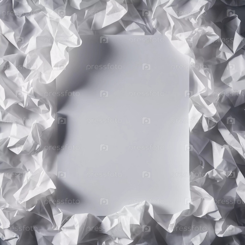 Сжатая белая бумага образует текстурированную границу вокруг пустого пространства, приглашая творчество писать, рисовать или проектировать проекты в чистом минималистическом стиле