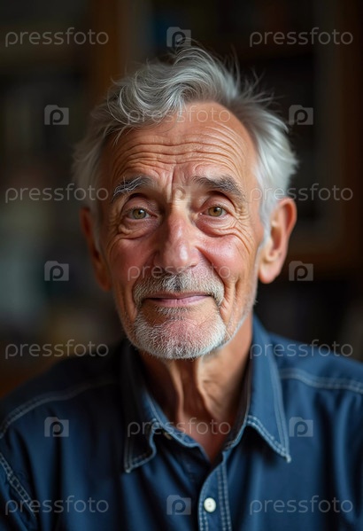 Пожилой мужчина с белыми волосами и бородатыми лучами счастливо демонстрирует свое дружелюбное поведение в повседневной одежде