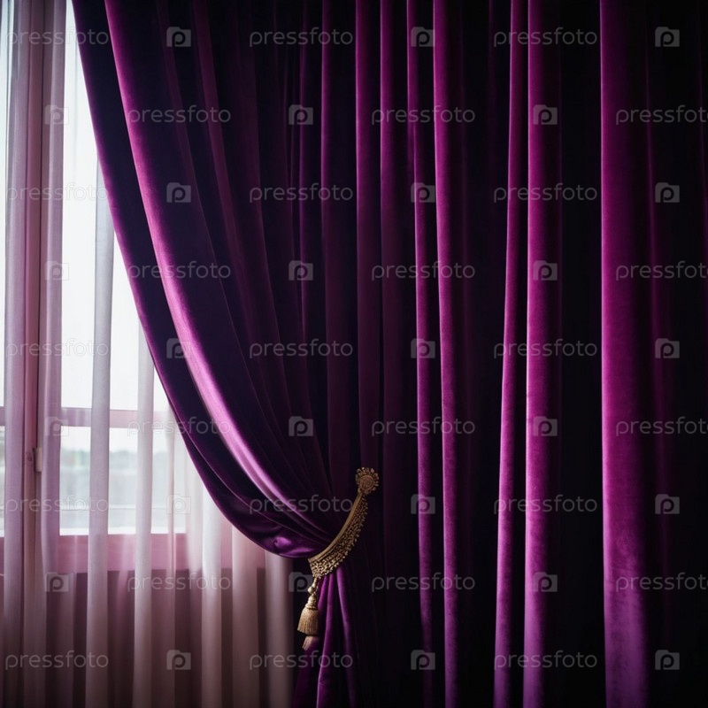 Занавес с мягкими гладкими складками. Глубокий фиолетовый цвет и роскошная текстура создают драматическую и элегантную атмосферу. Декорация и дизайн интерьера. Дорогой занавес из богатой ткани. AI