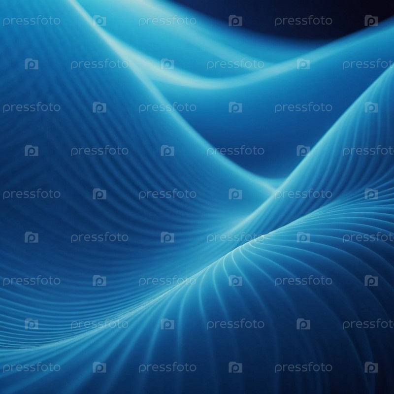Плавучие 3D-синие волны создают абстрактное представление динамики жидкостей, вызывая спокойствие и глубину в минималистическом дизайне, который улучшает цифровое творчество