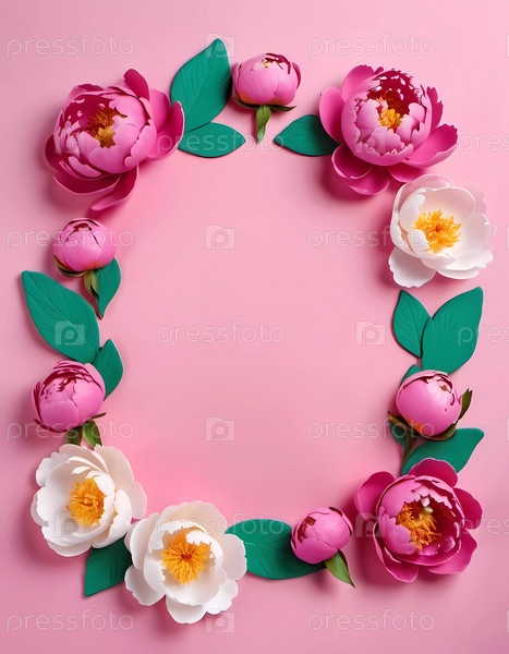 Декоративное устройство имеет красивые пионы и пышные зеленые листья, окружающие пустое розовое пространство.Мягкие цвета предлагают спокойный, художественный оттенок, подходящий для различных целей дизайна