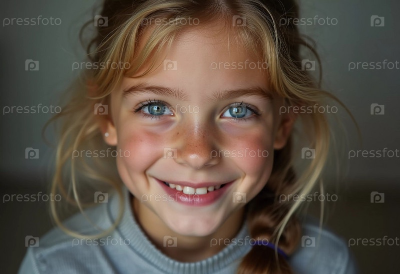 Молодая девушка с красивыми глазами и волнистыми волосами мягко улыбается. Ее игривое поведение сияет, когда она позирует в уютном помещении во Франции