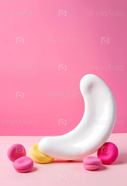 Яркое и красочное тесто сидит на светлой поверхности, отображая уникальные формы на белом и розовом абстрактном фоне, создавая игривую атмосферу