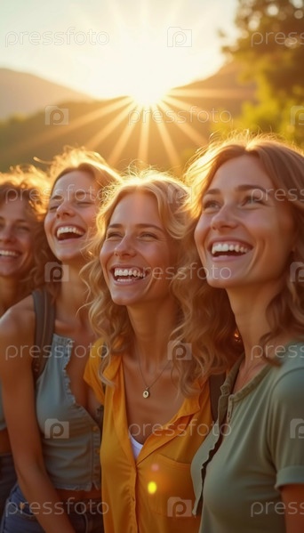 Четверо друзей греются под теплым солнцем, их смех отражается в то время как они наслаждаются компанией друг друга на прекрасном путешествии.Окруженные потрясающими пейзажами, их радость ощутима