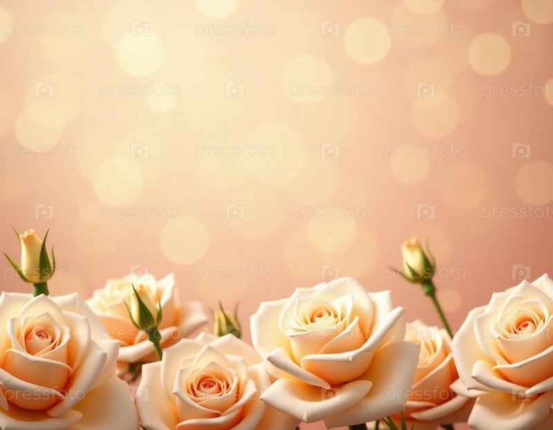 Нежные бежево-розовые розы прекрасно расположены, демонстрируя свои бархатные лепестки и тонкие оттенки.Очаровательное устройство установлено на мягко размытом фоне боке