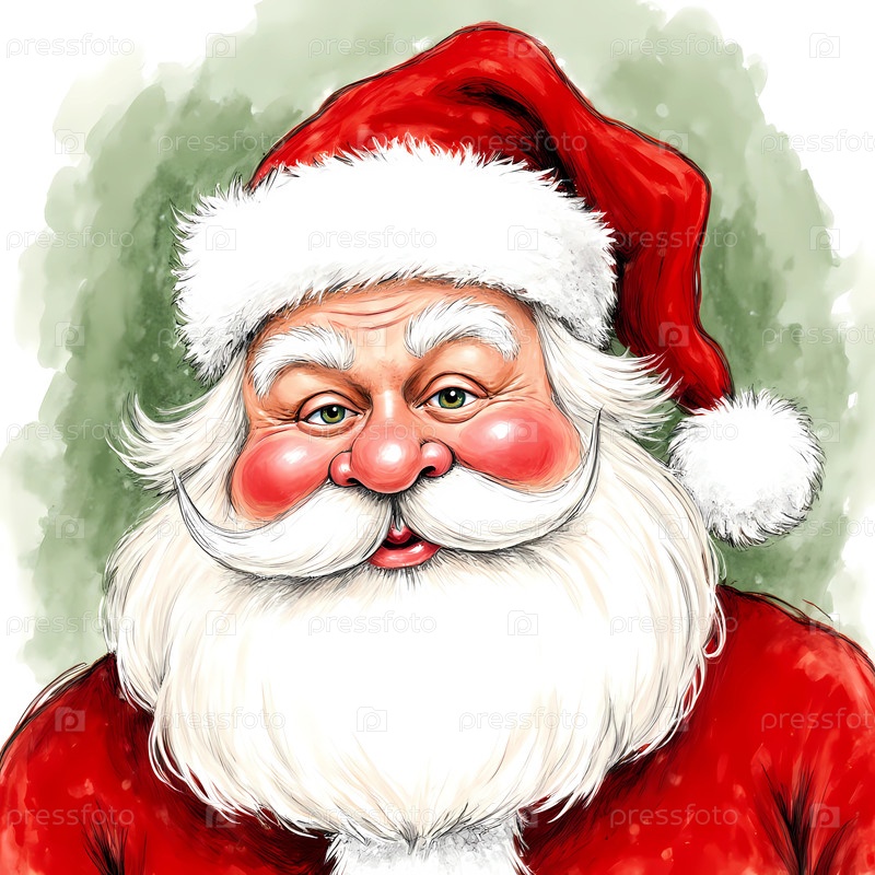 Веселый персонаж, одетый в ярко-красный костюм с белым мехом, с белой бородой и розовыми щеками, олицетворяющий дух праздников Рождества и Нового года Generative AI