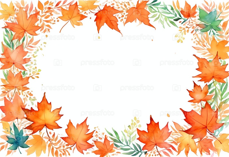 Красочная акварельная живопись осенних листьев в оранжевых и зеленых оттенках, создавая декоративную границу, идеально подходит для празднования Хэллоуина и сезонных дизайнов генеративного ИИ
