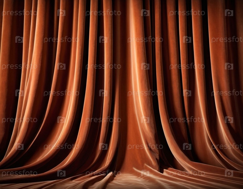 Занавес с мягкими гладкими складками. Глубокий коричневый цвет и роскошная текстура создают драматическую и элегантную атмосферу. Декорация и дизайн интерьера. Дорогая завеса из богатой ткани. AI