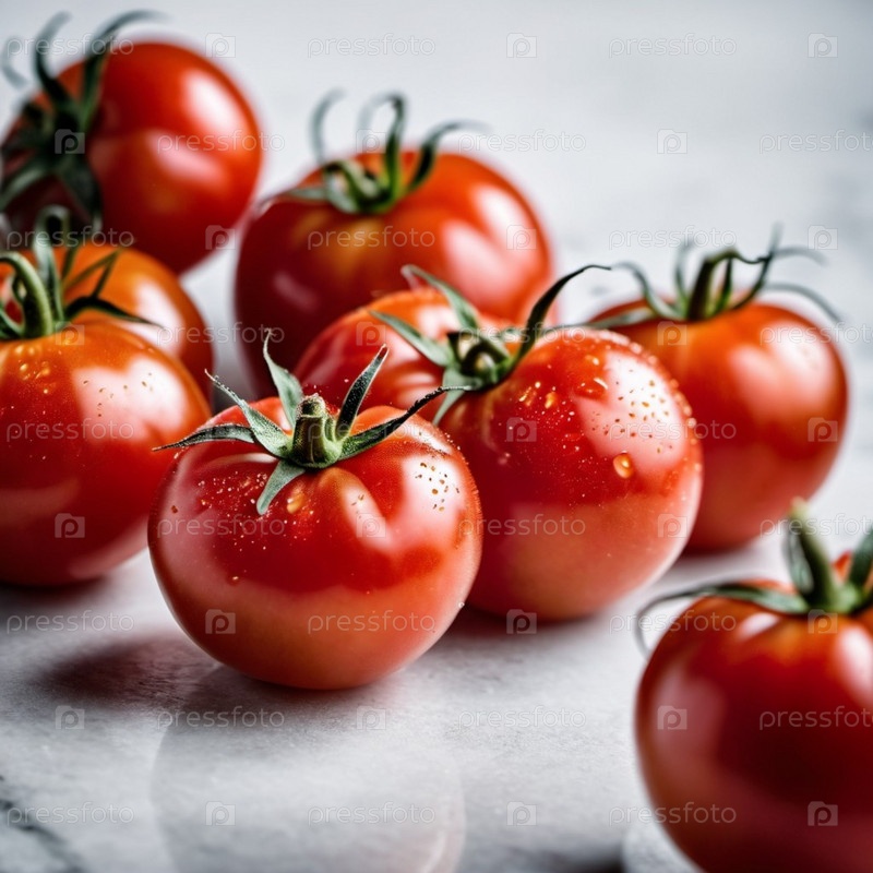 Группа спелых красных помидоров.Помидоры расположены в кластере.Свет захватывает поверхность томатов, подчеркивая их яркий цвет и блестящую текстуру.Они были недавно созданы