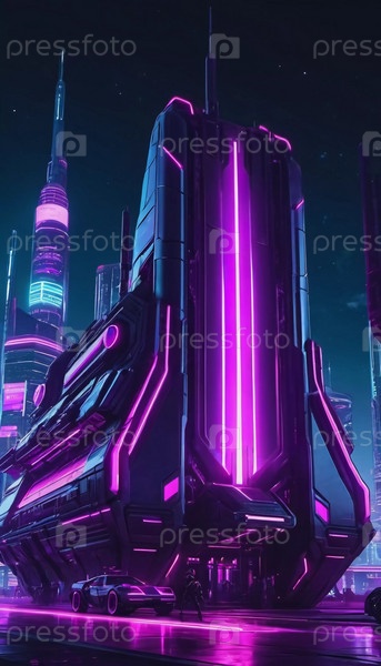 Футуристические космические корабли навигируют по завораживающей вселенной, наполненной неоновыми оттенками, демонстрируя передовые технологии среди сияющих городских пейзажей