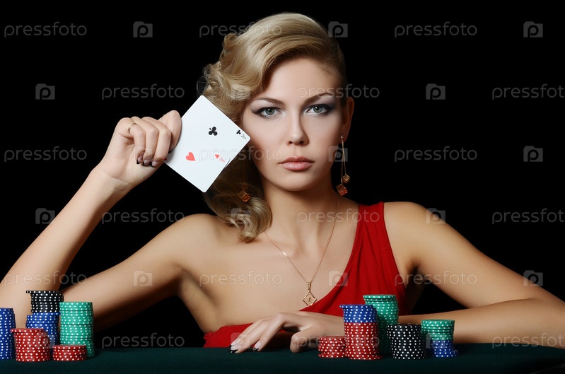 Красивая женщина с фишками казино