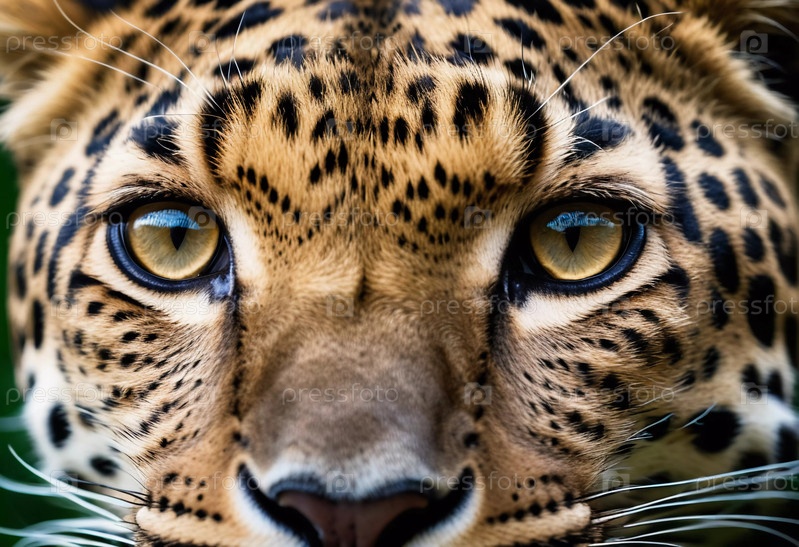 Глаза леопарда показывают поразительные детали и уникальные узоры, захватывая взгляд животного в его естественной среде. Сцена подчеркивает красоту и интенсивность дикой природы. Вид сверху. Генеративный ИИ