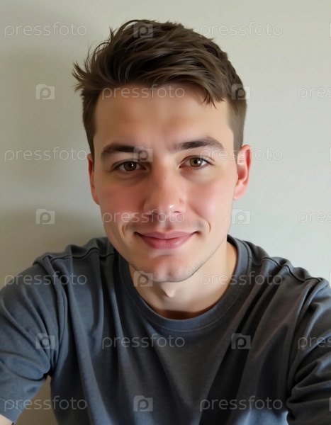 Белорусский мужчина отдыхает дома, смотрит на спокойствие с дружественной улыбкой на лице.Мягкое освещение создает теплую атмосферу, когда он наслаждается своим временем в помещении