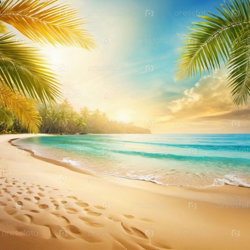 Серена - это пляжная сцена с нежными волнами, песчаным побережьем и пальмами, бросающими тень. Яркие цвета и мягкие штрихи создают спокойную атмосферу. Сгенерированный ИИ. Солнечные пляжные каникулы