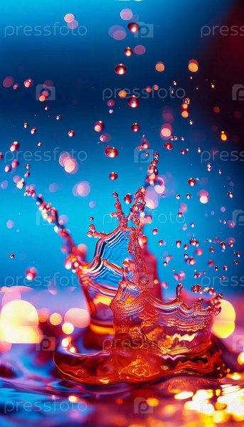 Множество ярких капель вспыхивают в красочный взрыв, создавая потрясающий дисплей ярких оттенков на слегка размытом фоне