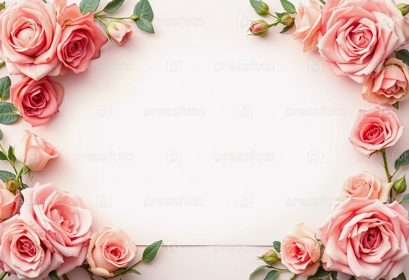 Нежные розовые розы окружают пустое пространство, идеально подходят для написания личных сообщений.Эта красивая цветовая аранжировка добавляет элегантности к любому случаю. День рождения, День матери, день святого Валентина