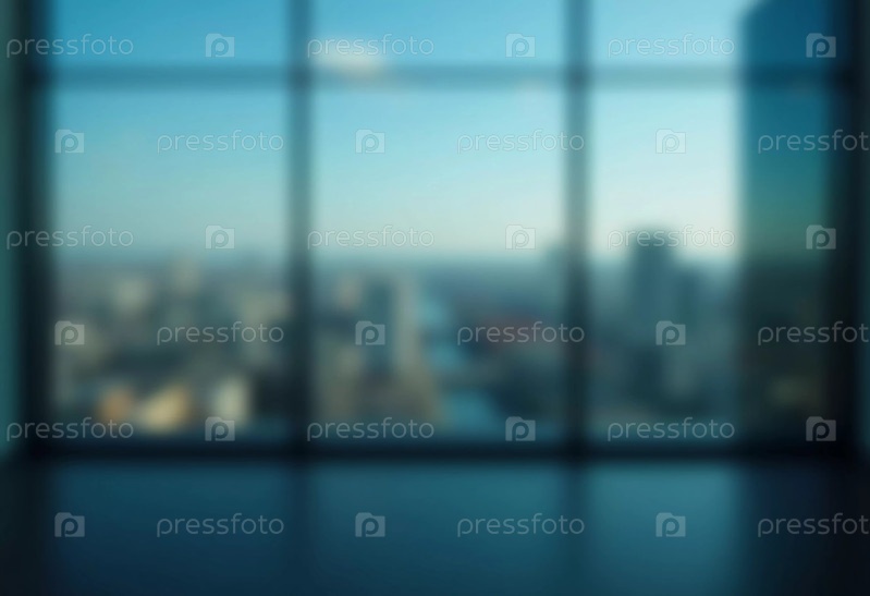 Размытая перспектива показывает современный городской горизонт через стеклянную стену во время заката, раскрывая динамику и сложность городской жизни. угасающий свет отражает энергию города