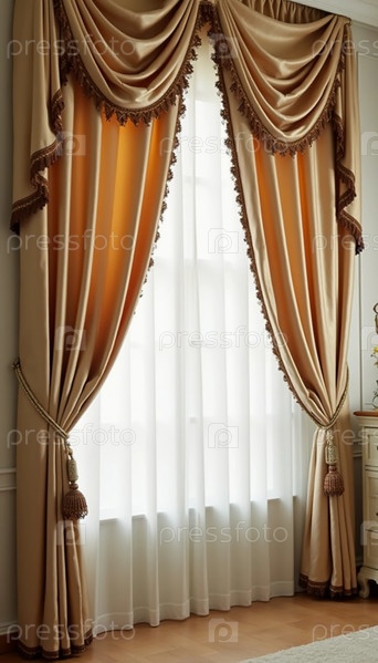 Роскошные шелковые шторы красиво украшают окно, фильтруя мягкий солнечный свет в комнату Generative AI