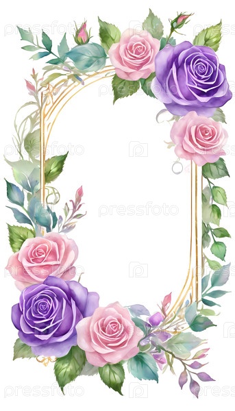 Элегантные фиолетовые розы создают потрясающую акварельную границу для приглашений и поздравительных открыток, посвященных любви и специальным случаям, таким как свадьбы и дни рождения