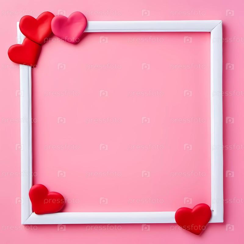 Игральная рамка на тему сердца демонстрирует различные красные и розовые сердца на мягком розовом фоне, обеспечивая идеальное пустое пространство для настроения и творчества