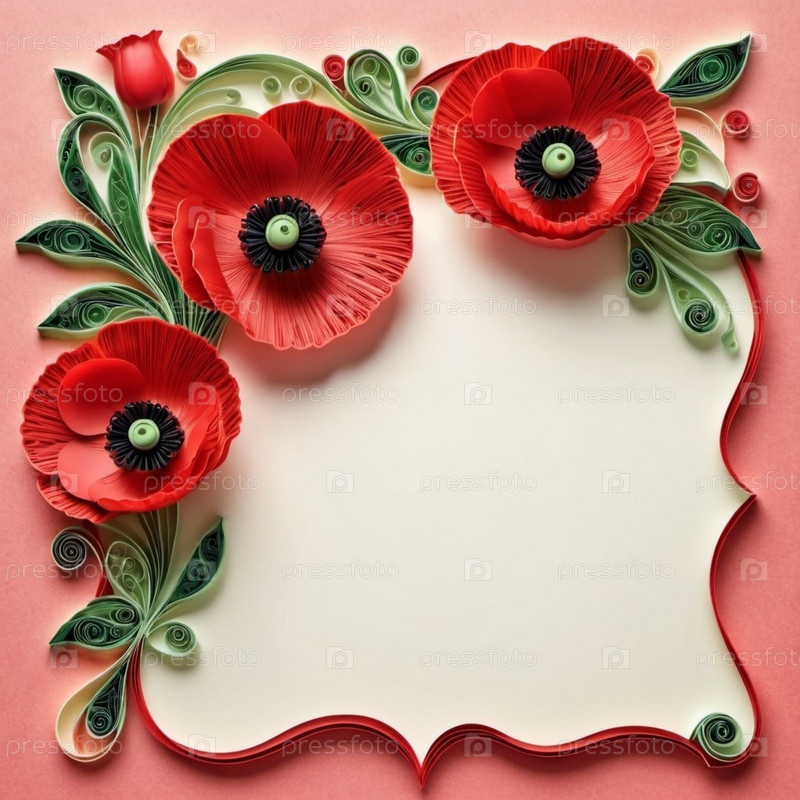 Красный мак с зелеными листьями и стеблями.Маки изображаются на различных стадиях цветения, некоторые полностью открыты, а другие в зародыше.Мягкая спина, создающая деликатное и романтическое ощущение