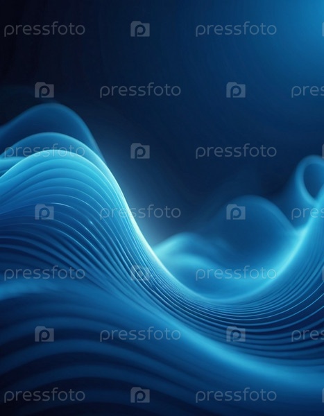 Плавучие 3D-синие волны создают абстрактное представление динамики жидкостей, вызывая спокойствие и глубину в минималистическом дизайне, который улучшает цифровое творчество