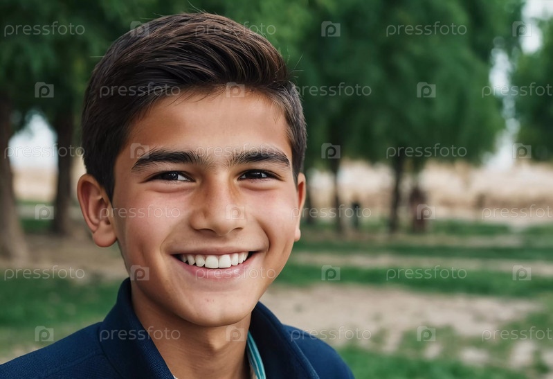 Веселый, красивый 18-летний таджикский мальчик сияет от счастья, стоя в живописном пейзаже, окруженном красотой природы во время теплого золотистого светофора