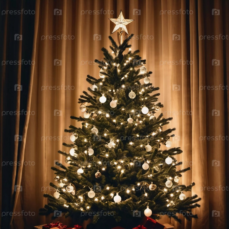 Красочные рождественские украшения украшают ветви елки, яркие шары в оттенках красного, золотого и розового цветов, олицетворяющие праздничное настроение зимой
