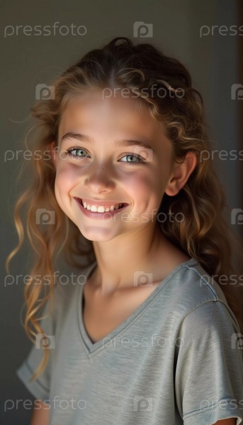 Молодая девушка с красивыми коричневыми глазами и волнистыми волосами мягко улыбается. Ее игривое поведение сияет, когда она позирует в уютной обстановке во Франции