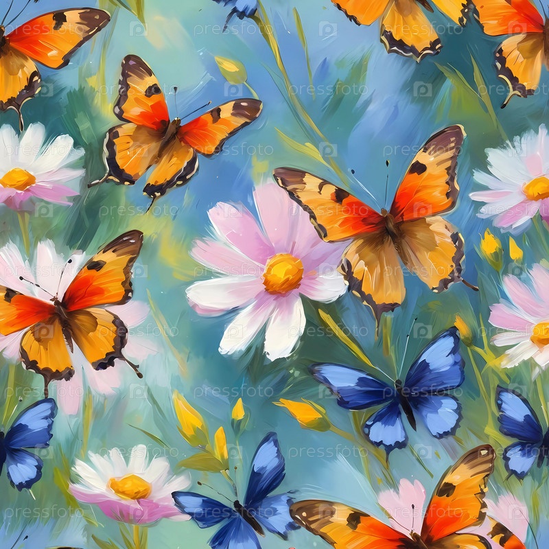 Красочные бабочки грациозно парили над ярким массивом диких цветов, создавая живую и веселую атмосферу на солнечном лугу