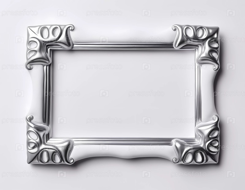 Эта украшенная серебряная прямоугольная рама имеет сложные детали и гладкий серый фон, создавая стильный фокус для отображения произведений искусства в современной среде