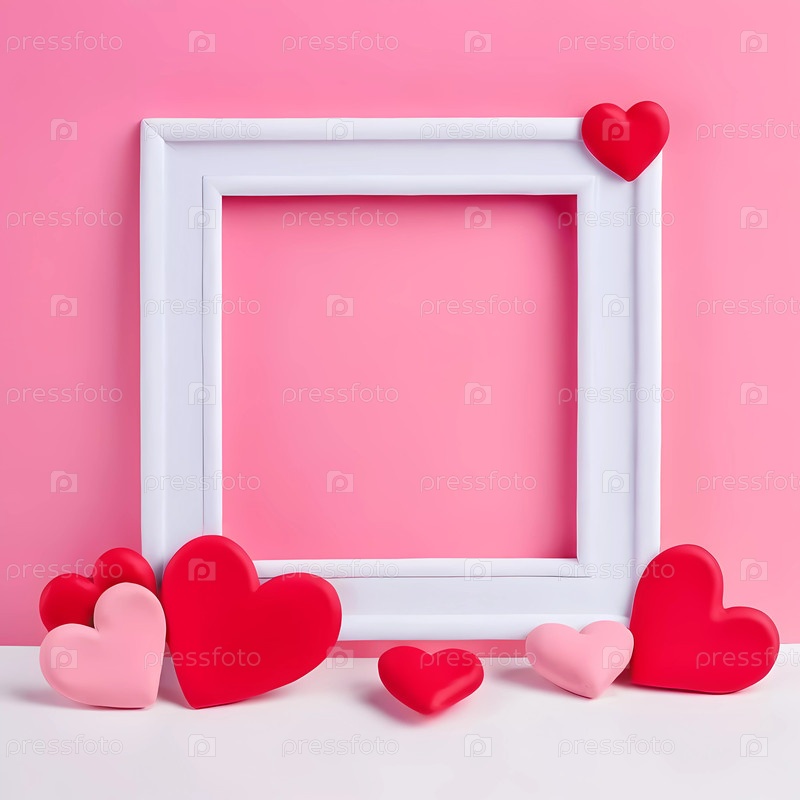 Игральная рамка на тему сердца демонстрирует различные красные и розовые сердца на мягком розовом фоне, обеспечивая идеальное пустое пространство для настроения и творчества
