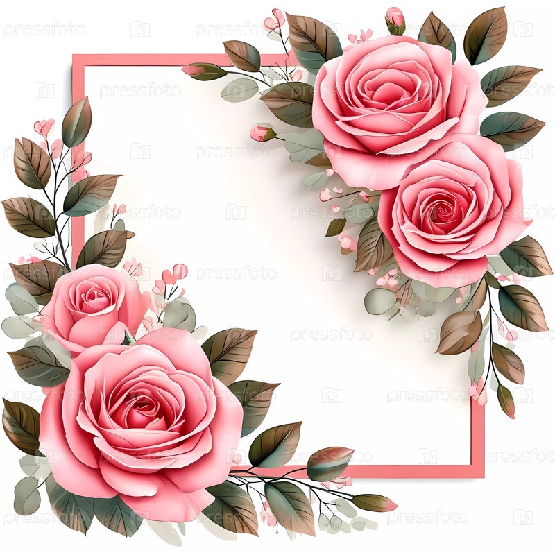 Ярко-розовые розы окружают пустое пространство, идеально подходят для личных поздравлений.Цветочные детали усиливают очарование карты, подходящей к различным праздникам и настроениям