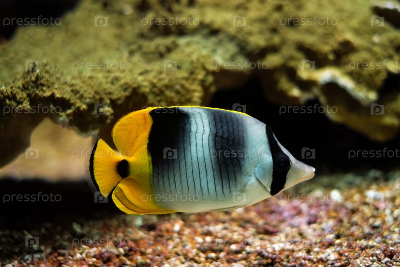 Тихоокеанская боковая бабочка Chaetodon ulietensis рыба под водой в море с кораллами на заднем плане